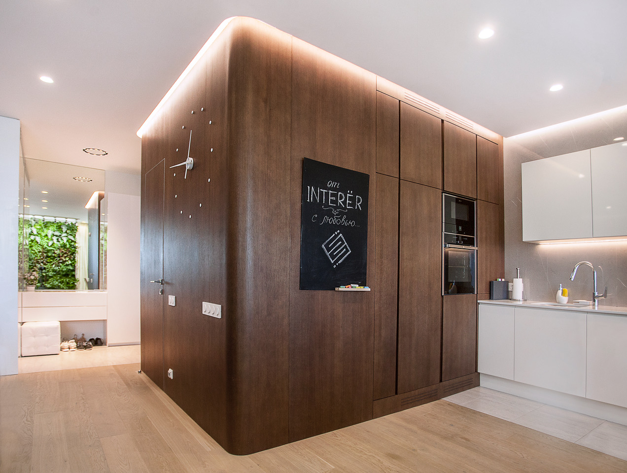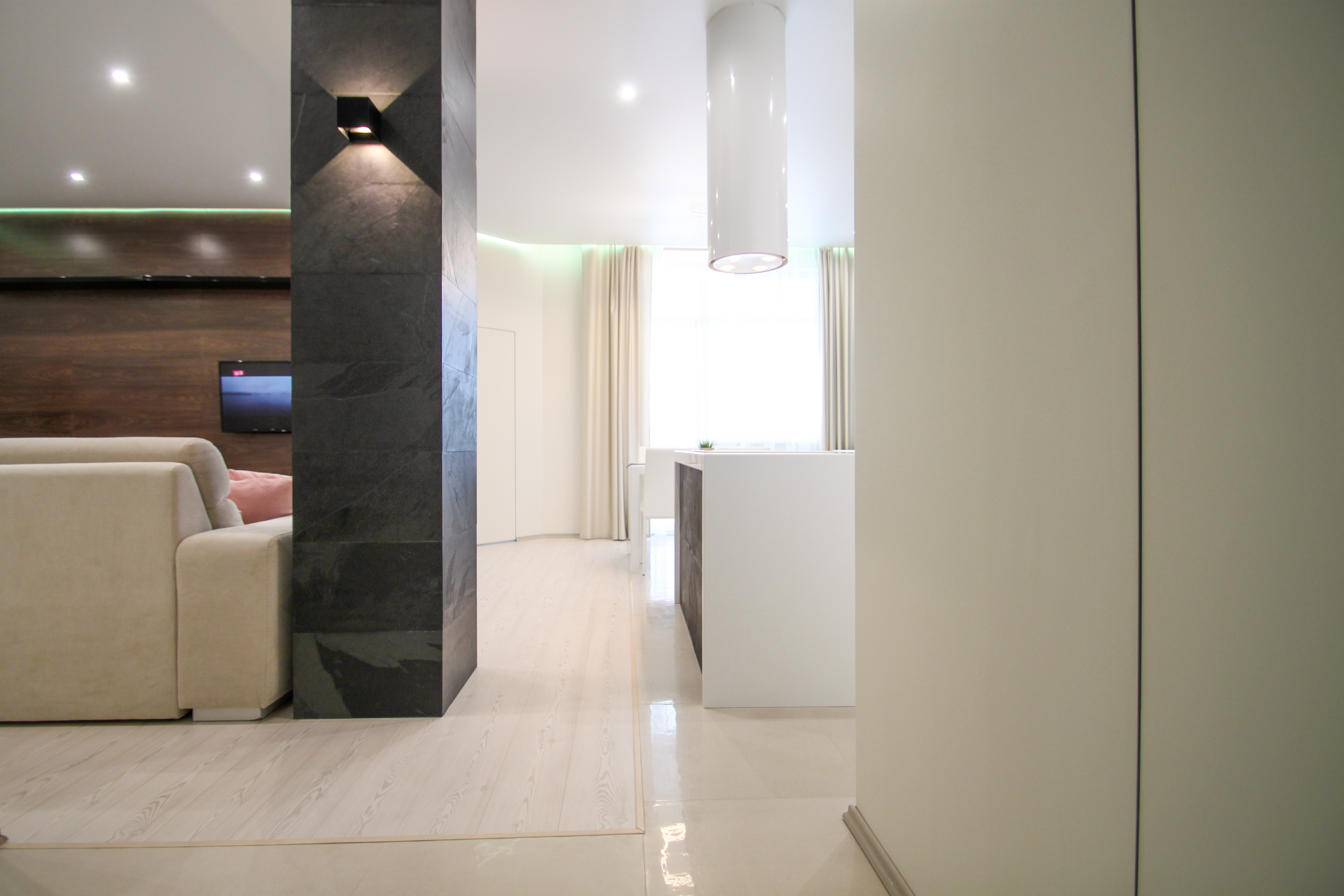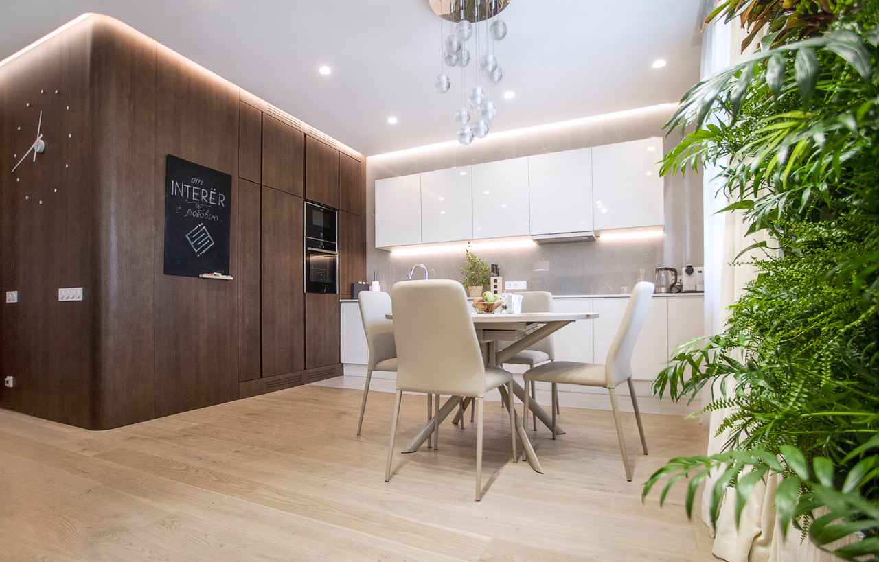 Ремонт квартиры в стиле минимализм. Полы из массива макасара, светодиодное освещение и десятки метров подсветки, лучевая система отопления.