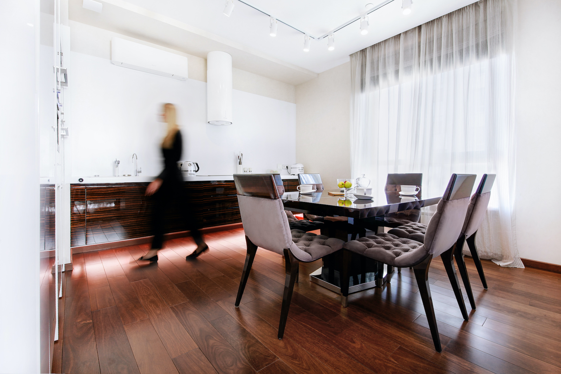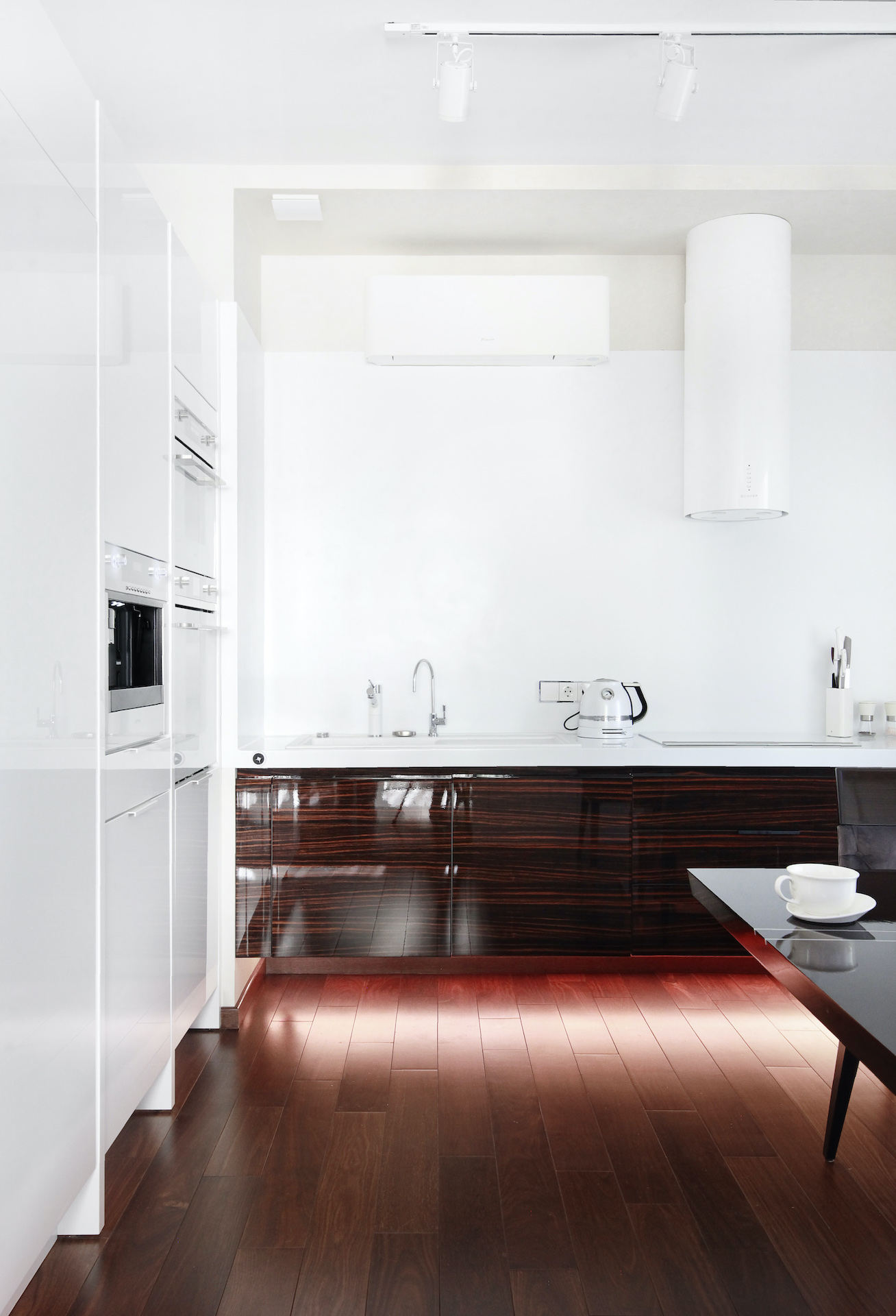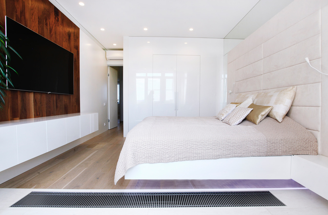 Ремонт квартиры в стиле минимализм. Полы из массива макасара, светодиодное освещение и десятки метров подсветки, лучевая система отопления.